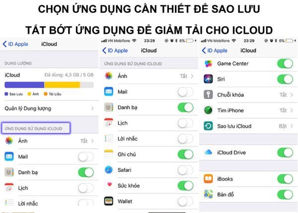 Để có thể giải phóng bộ nhớ iCloud bạn hãy làm theo các cách sau đây, để có thể loại bỏ bớt những ững dụng hay sao lưu không cần thiết trên iCloud: