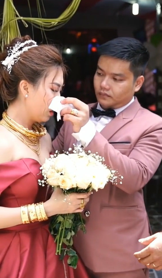 Chú rể an ủi vợ mình để cô đỡ buồn. (Ảnh: Chụp màn hình video TikTok H.T.H)
