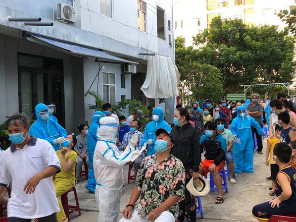 Nhân viên y tế quận Sơn Trà đang lấy mẫu xét nghiệm cho người dân - Ảnh: LÊ THÚY