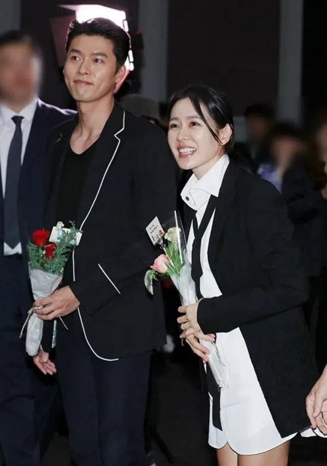 Dù không cố tình diện đồ đôi nhưng trang phục của Hyun Bin và Son Ye Jin tương đồng đến lạ với hai gam màu đen - trắng quen thuộc nhưng luôn thời thượng.