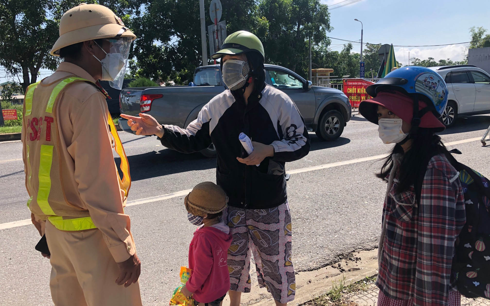 "Chị thuộc diện không được về quê, còn trường hợp con gái chị thì chúng tôi sẽ giải quyết cho cháu qua chốt để về quê theo học. Chị bốc máy gọi ngay người thân ra đón cháu đi" - cán bộ CSGT nói.