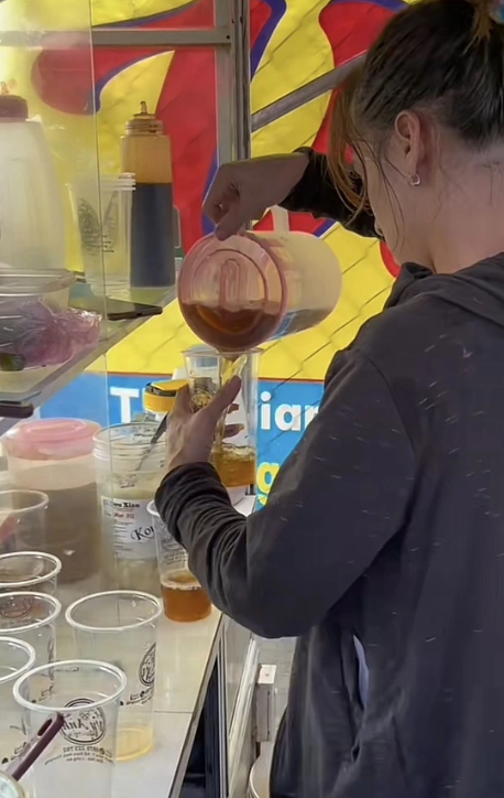 Đông đúc người đợi chờ để mua ly trà mãng cầu (Ảnh chụp màn hình)