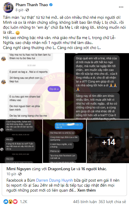 “Tấm màn “sự thật” từ từ hé mở.. sẽ còn nhiều thứ nhé mọi người ơi! Mình và ông xã là nhân chứng sống, không biết bao lần thấy anh Long bị cɦửi.. rồi đọc luôn những tin nhắn “em ấy” ( Linh Lan – vợ 2 của Vân Quang Long) cɦửi Ba Mẹ L rất nặng lời.. . nếu không muốn nói là rất…