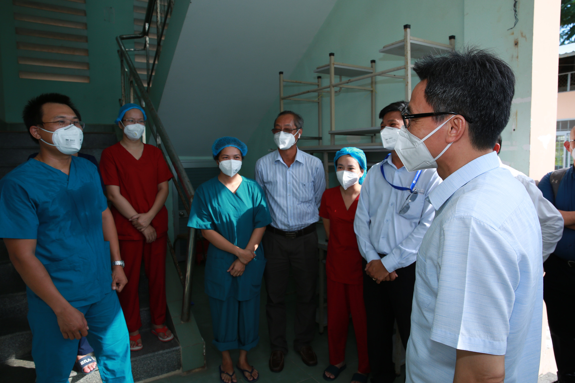 Phó thủ tướng Vũ Đức Đam đi thăm một khu điều trị bệnh nhân COVID-19 ở Đồng Tháp - Ảnh: TIẾN LONG