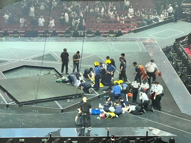 Trang HK01 cho hay vụ việc đã được chuyển cho Tổ trọng án Tây Cửu Long điều tra. Theo nguyên nhân ban đầu, 1 trong 2 sợi dây cáp kim loại đã bị đứt, khiến màn hình rộng 3 m và dài 4,9 m rơi xuống sân khấu.