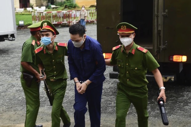 Nguyễn Kim Trung Thái được áp giải vào khu vực phòng xét xử. Ảnh: Hoàng Triều