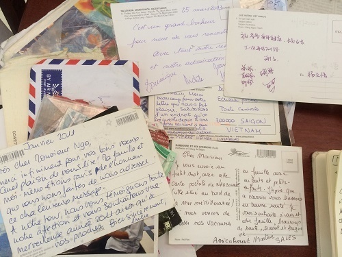 Những bức thư cảm ơn được gửi cho cụ Ngộ từ khắp nơi trên thế giới. (Ảnh: Thoixua)