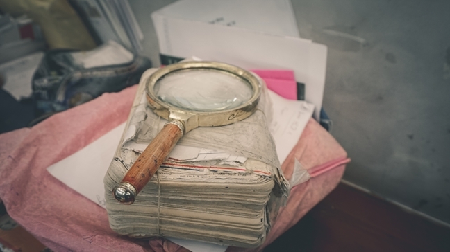 Những kỷ vật quen của người bưu tá dành nửa thế kỷ viết thư thuê. (Ảnh: Phụ Nữ Online)