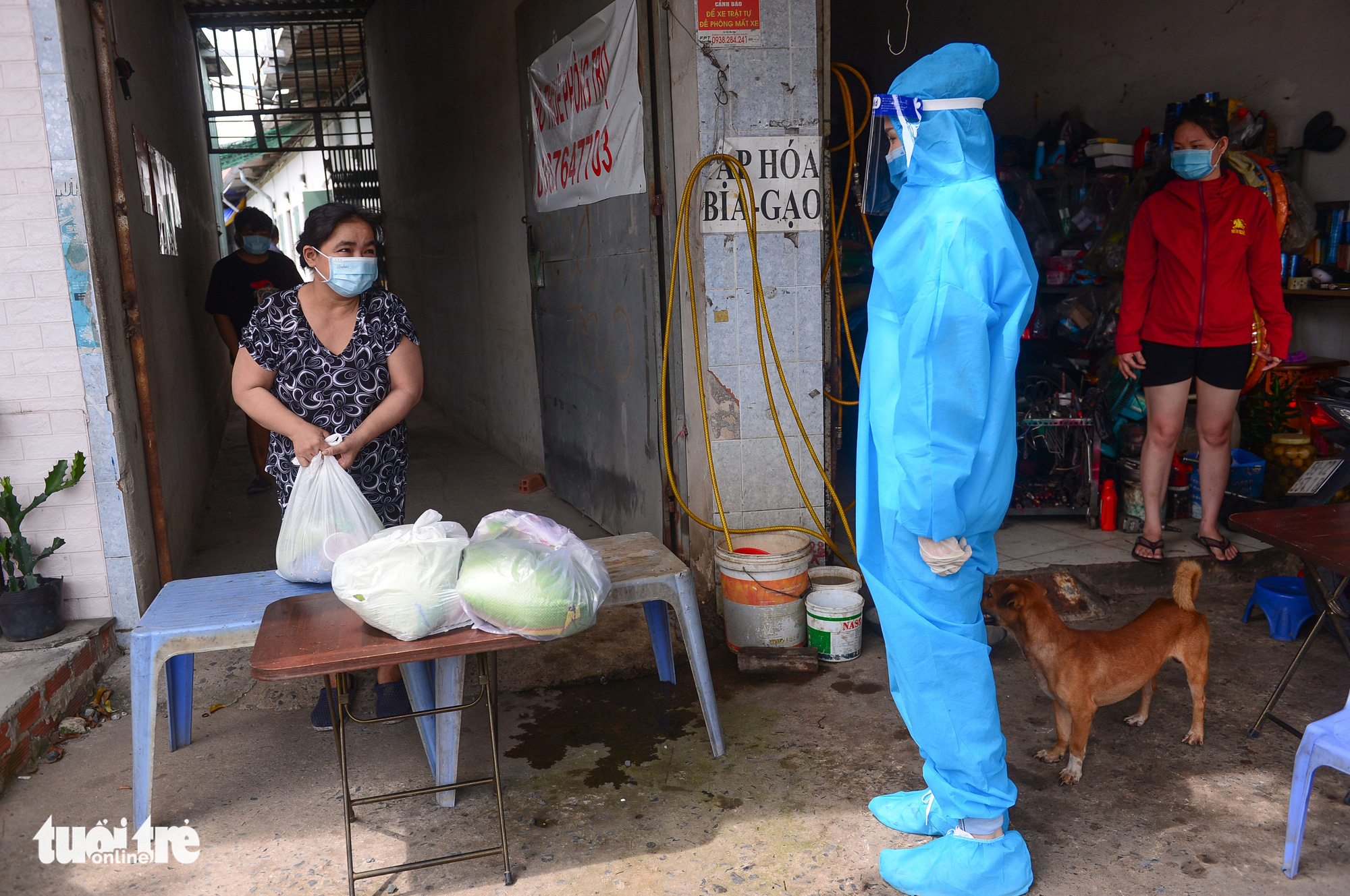 Tặng quà hỗ trợ người dân ở trọ tại xã Hưng Long, huyện Bình Chánh, TP.HCM - Ảnh: QUANG ĐỊNH