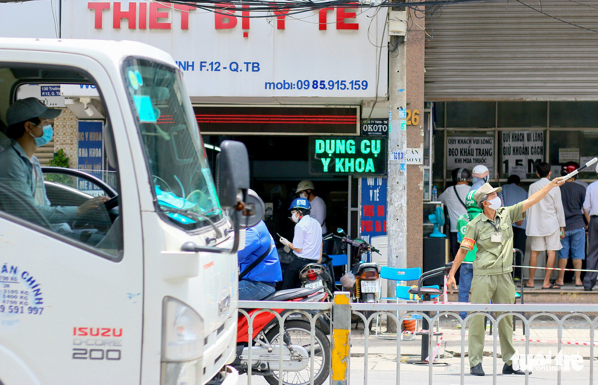 Người dân xếp hàng chờ mua tại các nhà thuốc trên đường Trường Chinh, quận Tân Bình - Ảnh: CHÂU TUẤN