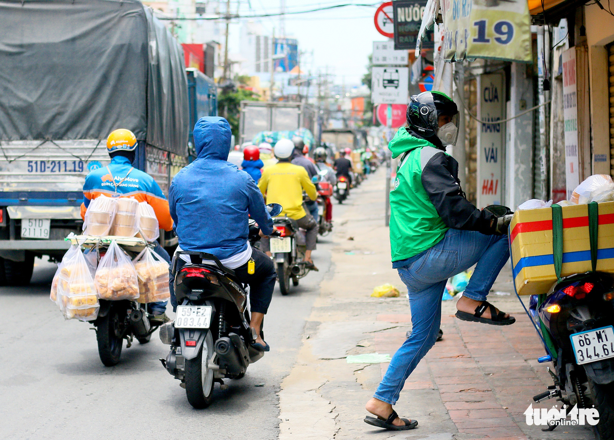 Các shipper tất bật đi giao hàng - Ảnh: CHÂU TUẤN