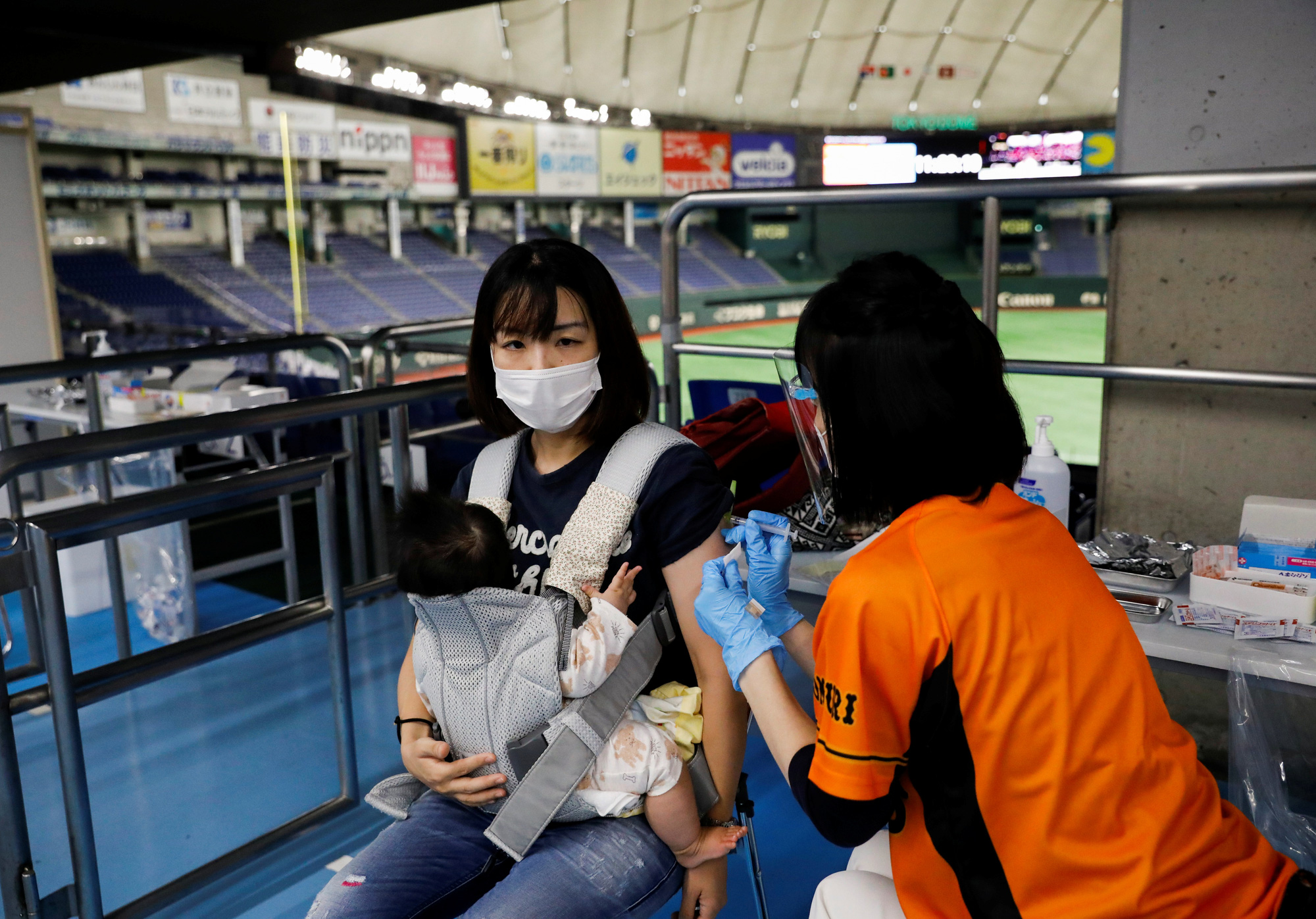 Một người dân được tiêm vắc xin ngừa COVID-19 tại Tokyo, Nhật Bản, ngày 16-8 - Ảnh: REUTERS