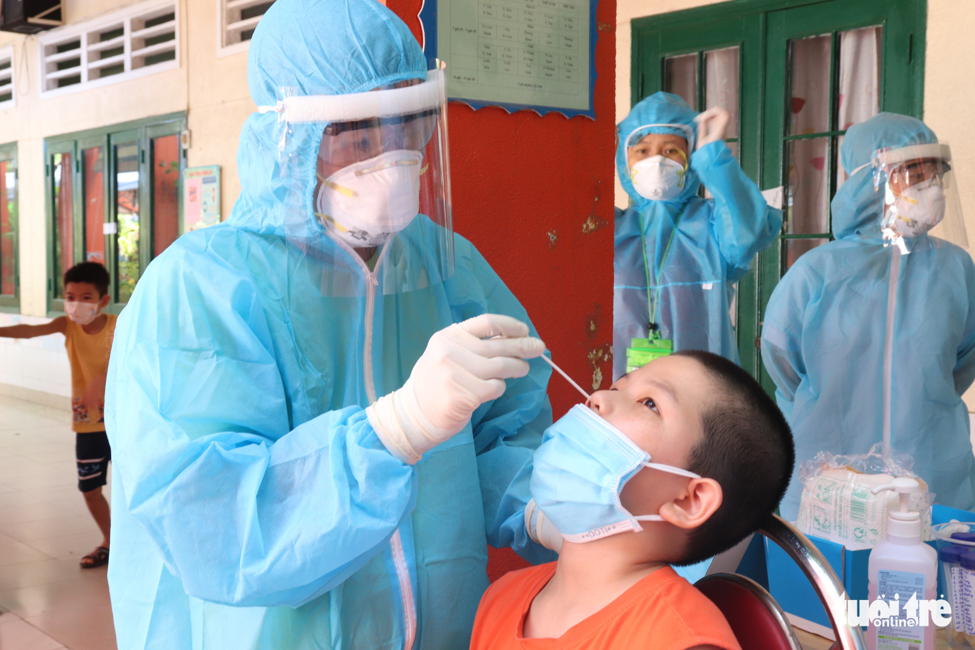 Một em bé ở phường Tân Thành, quận Tân Phú, TP.HCM được lấy mẫu xét nghiệm tầm soát COVID-19 - Ảnh: XUÂN MAI
