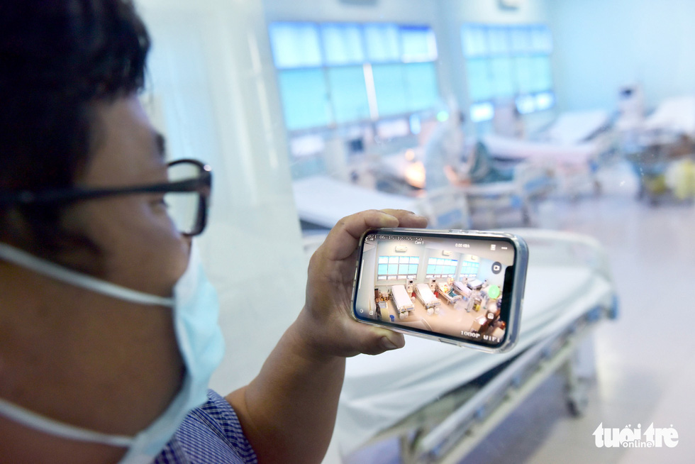 Ứng dụng công nghệ vào theo dõi điều trị cho các bệnh nhân mắc COVID-19 tại Bệnh viện điều trị COVID-19 Củ Chi - Ảnh: DUYÊN PHAN