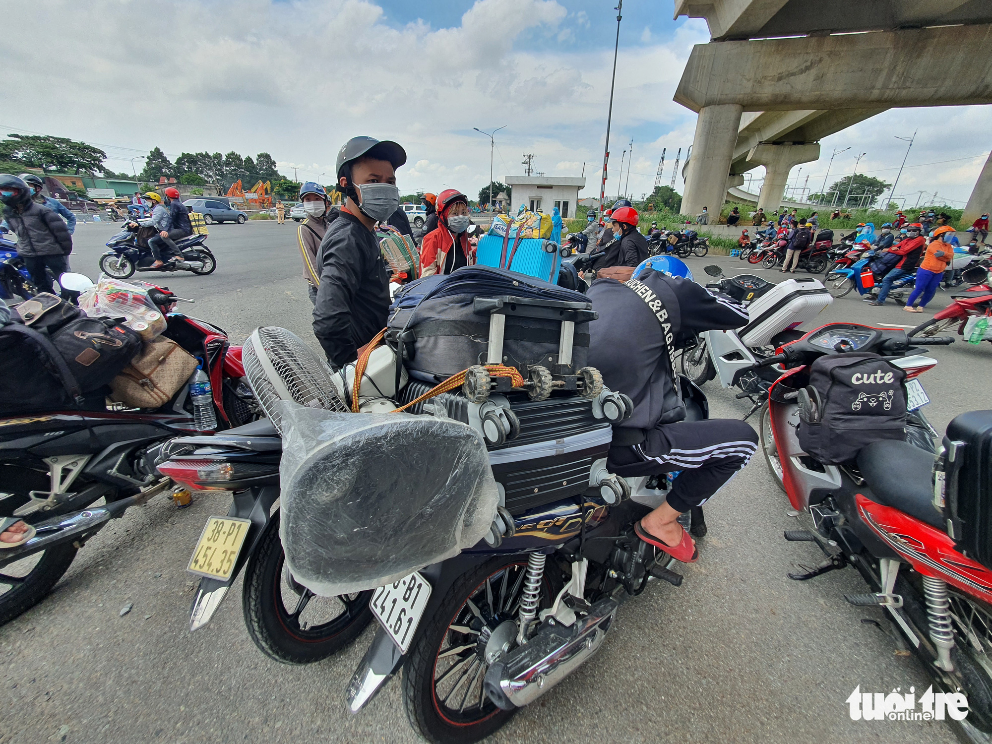 Đầu giờ chiều 15-8, ghi nhận của Tuổi Trẻ Online, tại khu vực các chốt ở khu du lịch Suối Tiên và trước cổng bến xe Miền Đông mới (TP Thủ Đức), hàng trăm người dân đi xe máy cá nhân mang đồ lỉnh kỉnh, nhiều người còn chở theo con nhỏ có ý định về quê các tỉnh miền Trung, Tây Nguyên…