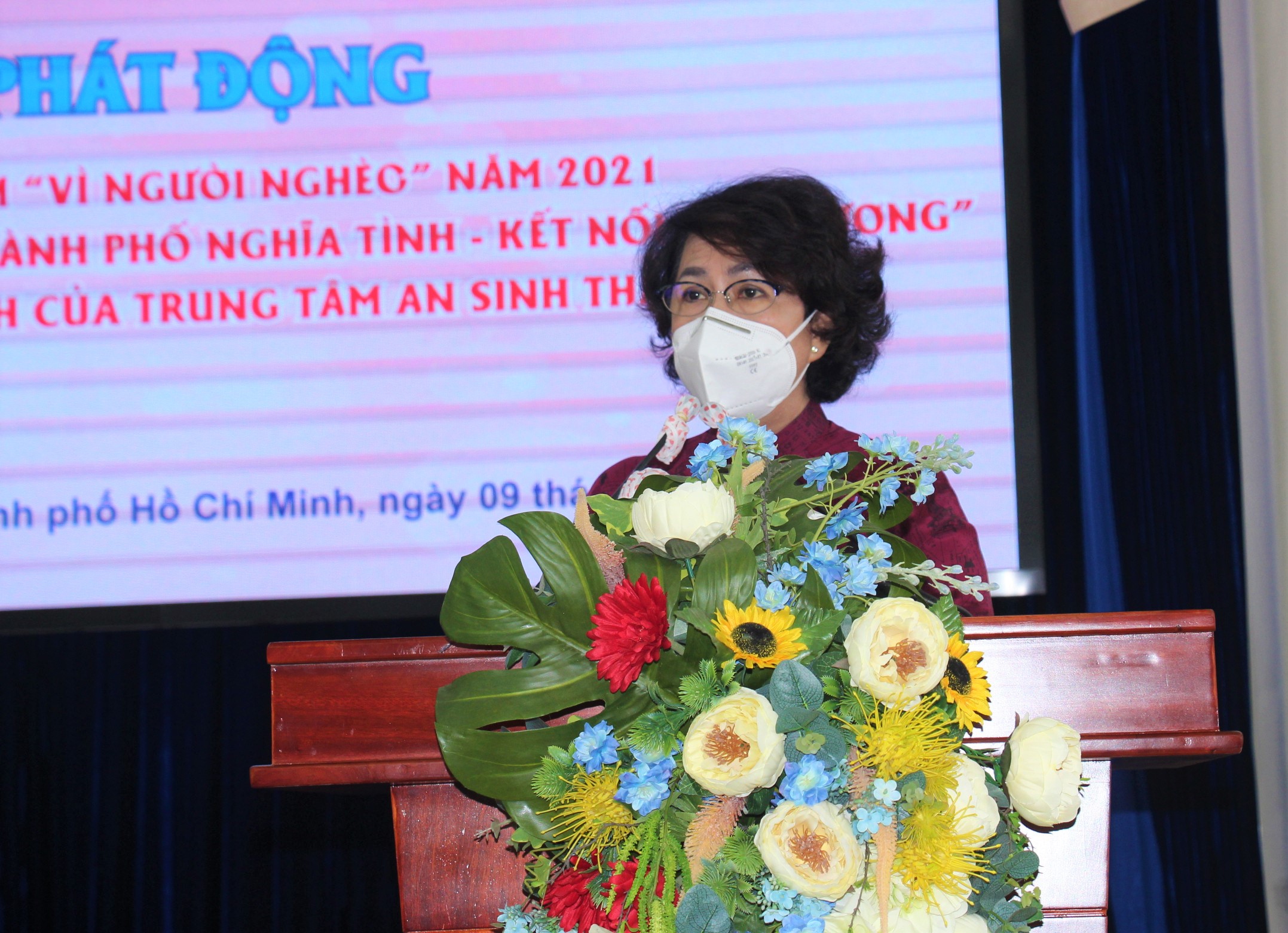 Bà Tô Thị Bích Châu phát biểu tại lễ ra mắt chương trình "TP nghĩa tình - Kết nối yêu thương" - Ảnh: KIM ÚT