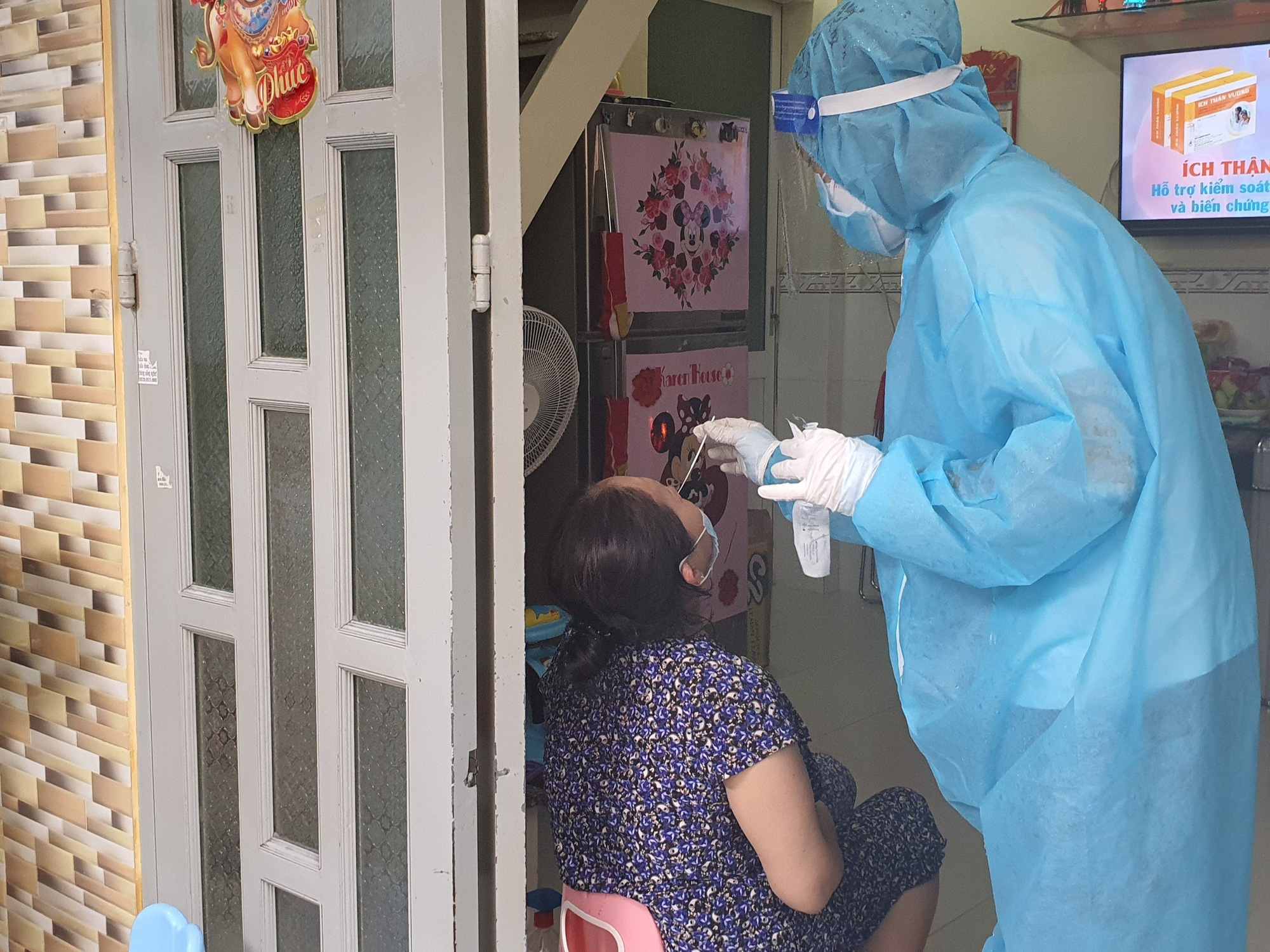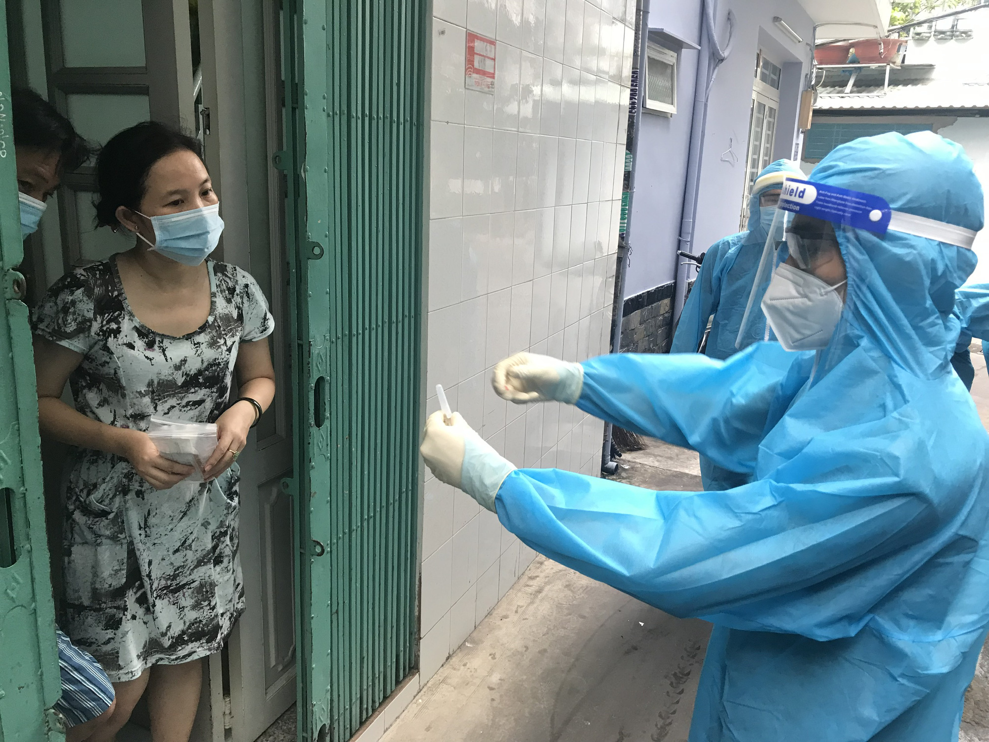 Tại phường 11, quận Bình Thạnh, chiều cùng ngày, lực lượng quân y tăng cường từ Học viện Quân y (Hà Nội) đã "đi từng ngõ, gõ từng nhà" một số khu vực để phát kit test nhanh và hướng dẫn người dân tự lấy mẫu xét nghiệm.