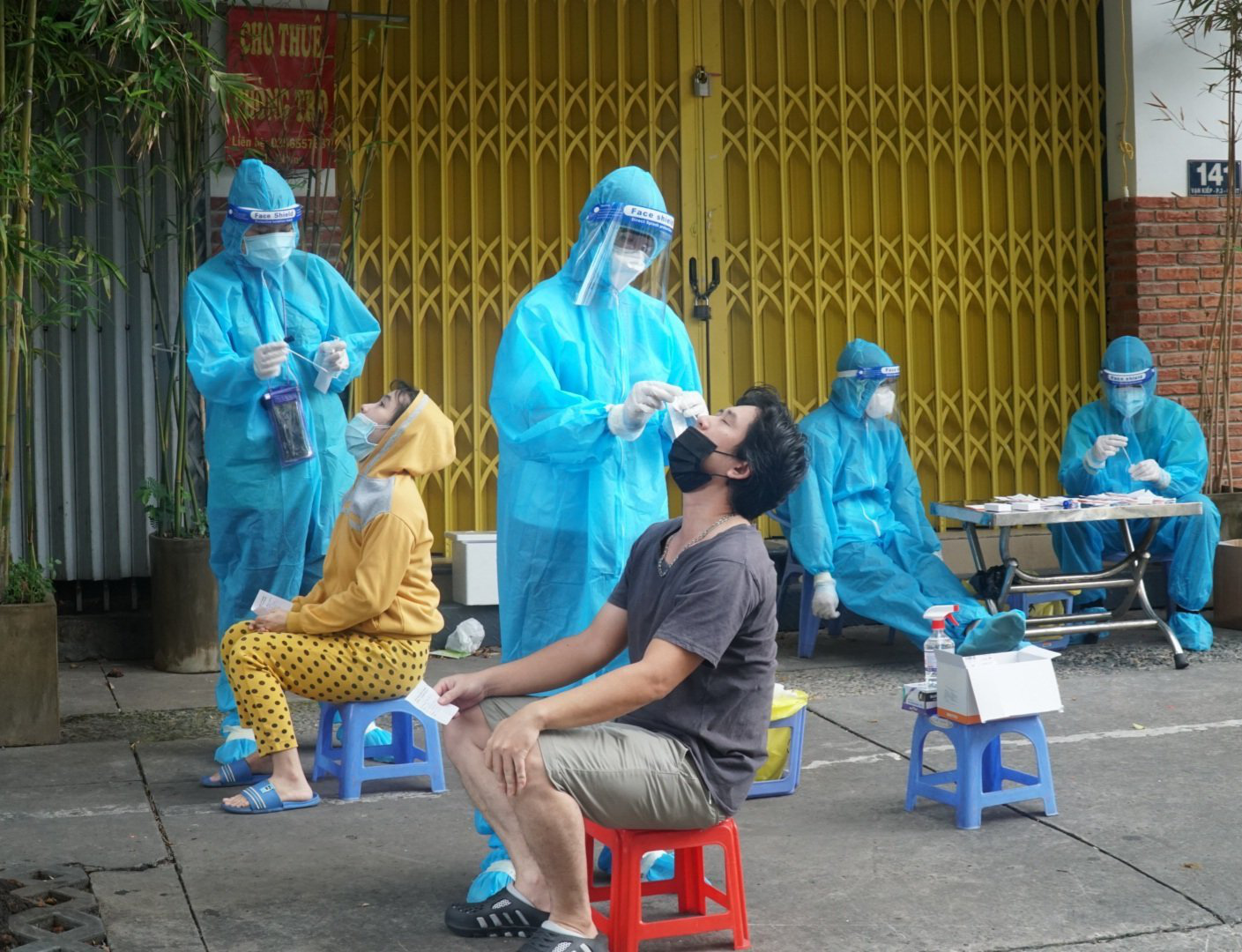 Theo ghi nhận của Tuổi Trẻ Online, ngày 24-8, một tổ lấy mẫu xét nghiệm cộng đồng thuộc phường 3, quận Bình Thạnh đã tổ chức xét nghiệm nhanh cho toàn bộ người dân tại tổ 33 và 34, khu phố 3 trên đường Vạn Kiếp.
