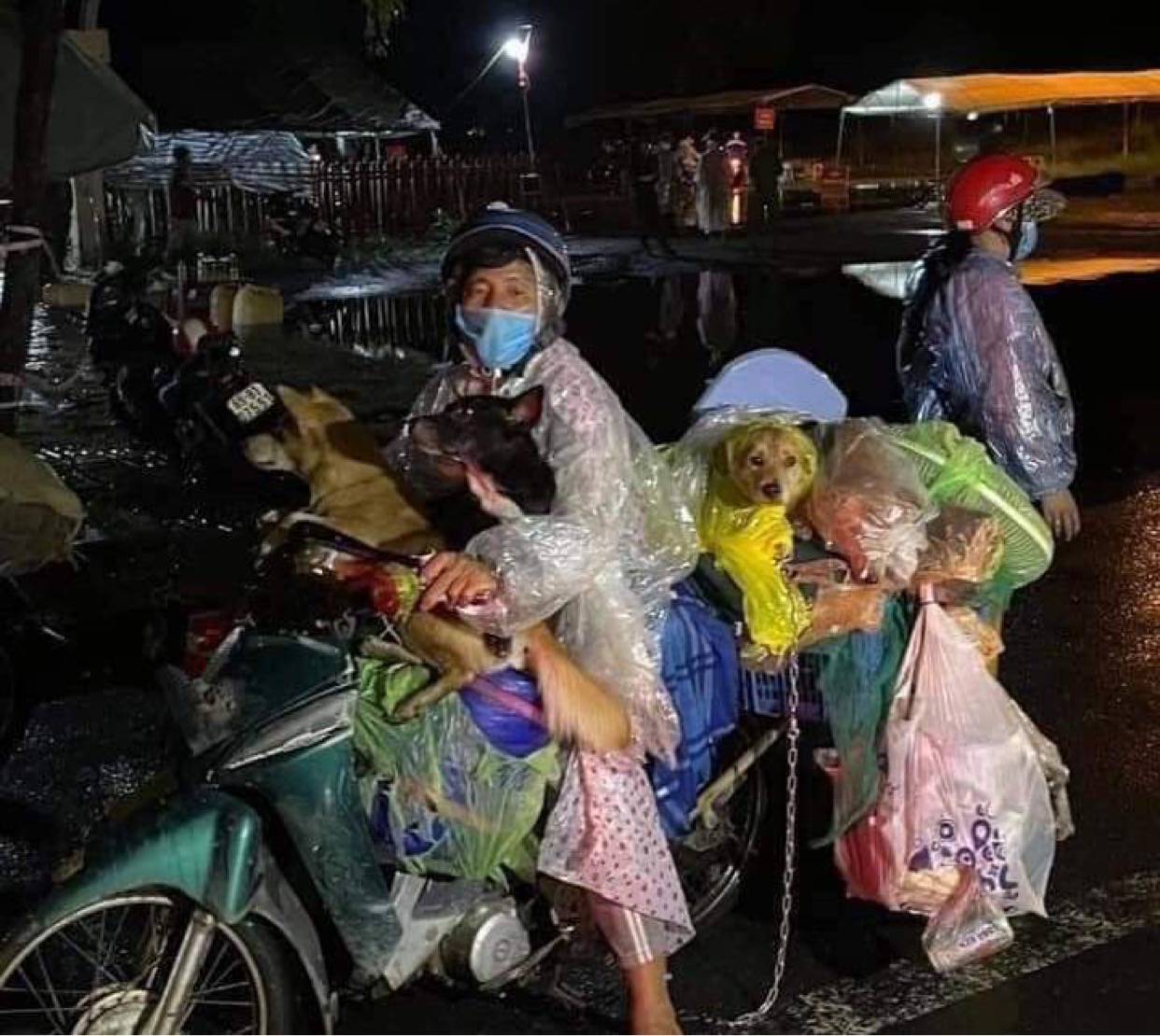 Khi về còn có vợ chồng ông Nguyễn Duy Khanh (39 tuổi), 2 gia đình mang theo 17 con chó (4 chó lớn và 13 chó con) và 1 con mèo, trên đường về đã cho 2 con chó con.