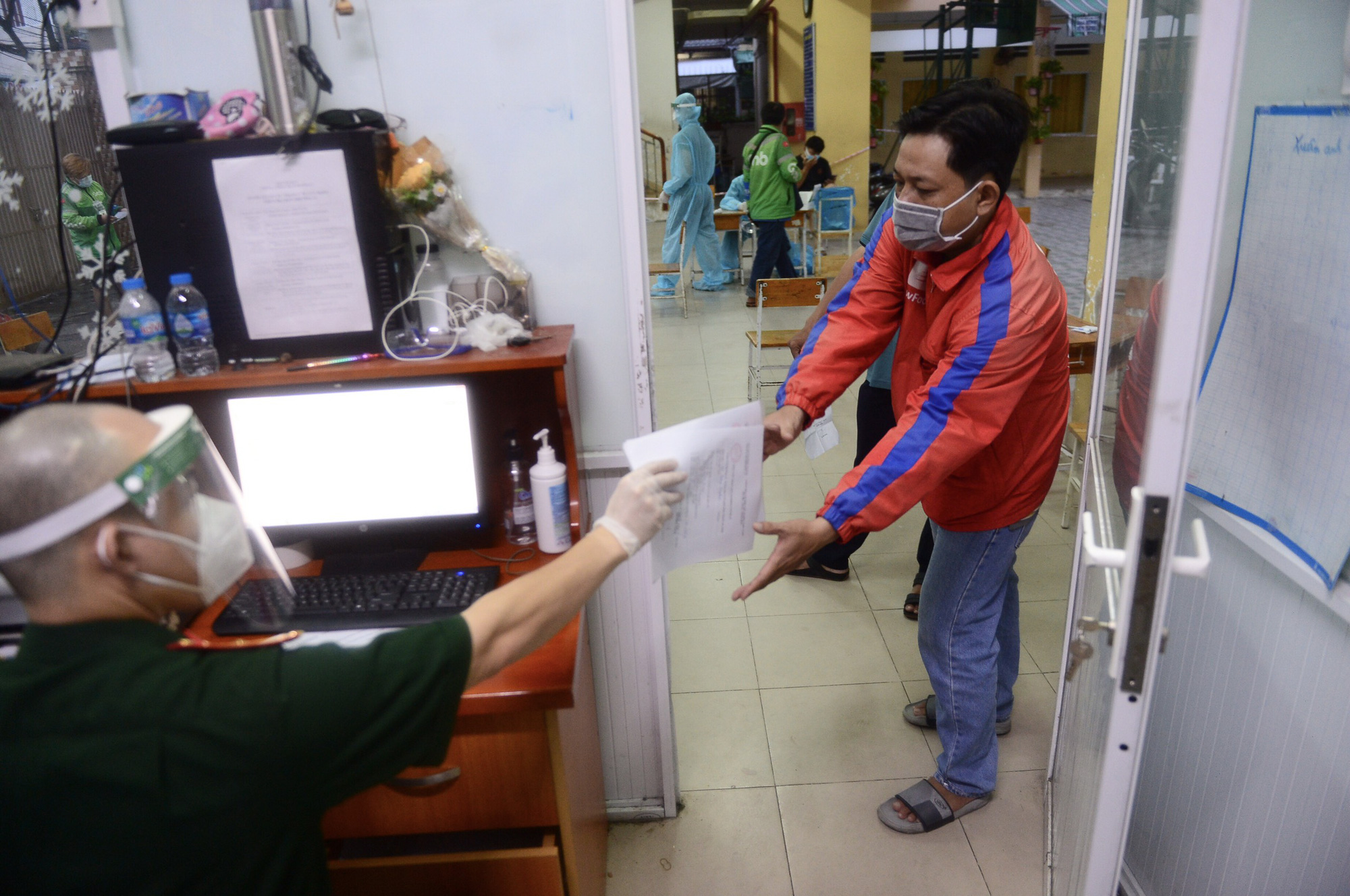 Chuẩn bị cho ngày chạy liên quận với hy vọng nhận được nhiều đơn hàng, nhiều tài xế của các hãng như Grab, Be, Ahamove... tập trung đến trạm y tế ở phường nơi cư trú để xét nghiệm từ tờ mờ sáng 16-9.