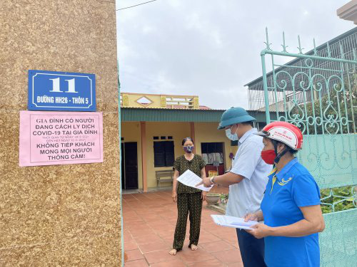 Cán bộ xã Hoằng Thái, huyện Hoằng Hóa (Thanh Hóa) đến từng nhà dân có trường hợp F2 cách ly tại nhà để tuyên truyền phòng chống COVID-19 - Ảnh: Nguồn Cổng thông tin điện tử huyện Hoằng Hóa
